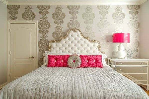 Since the bedroom walls are usually immune to daily chaos and extensive wear and tear (after all, you’re sleeping in there most of the time!) this is a great space to try delicate wallpapers that wouldn’t hold up anywhere else. Feel free to choose a delicate paper that wouldn’t be possible elsewhere, like glitters, grasscloths, or delicate textural papers.