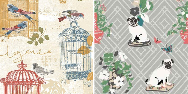 When it comes to prints of animals, there’s no shortage of choices. Birds are a familiar favorite, but the options are nearly endless. Find wallpaper patterned with deer, dragonflies, and even dogs!