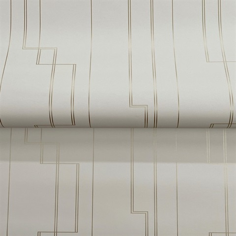 Pattern Name:Anson Taupe & Gold Art Deco Vertical Stripe Wallpaper