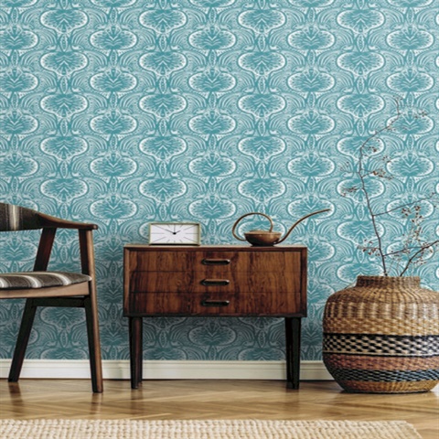 Pattern Name:Aqua Lotus Palm Paisley Wallpaper
