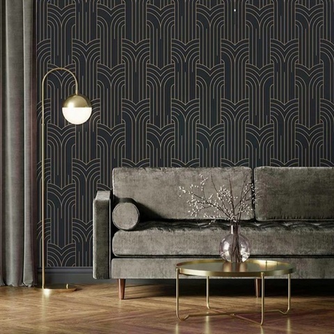 Arch Deco Black and Silver Wallpaper