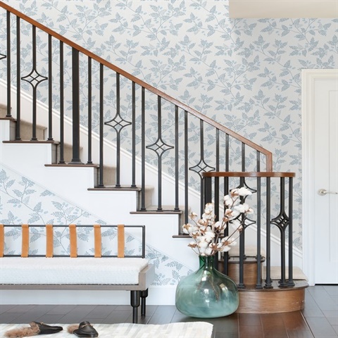 Ardell Light Blue Block Print Fern Leaf Wallpaper