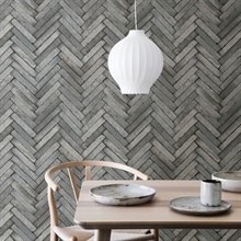 Arrow Slate Blue Diagonal Herringbone Faux Stone Wallpaper