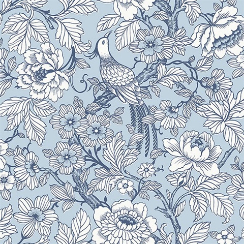 Pattern Name:Beaufort Light Blue Flowers & Birds Chinoiserie Wallpaper