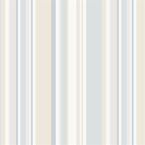 Beige and Blue Step Stripe Prepasted Wallpaper