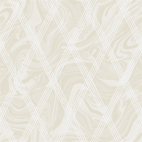 Beige Geometric Pearlescent Diagonal Diamonds Wallpaper