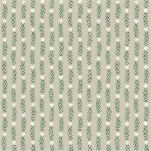 Beige & Green Eden Vertical Leaf Stripe Wallpaper