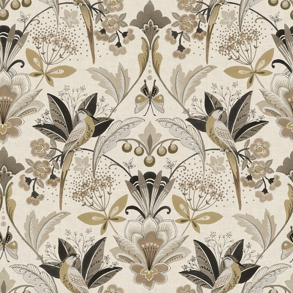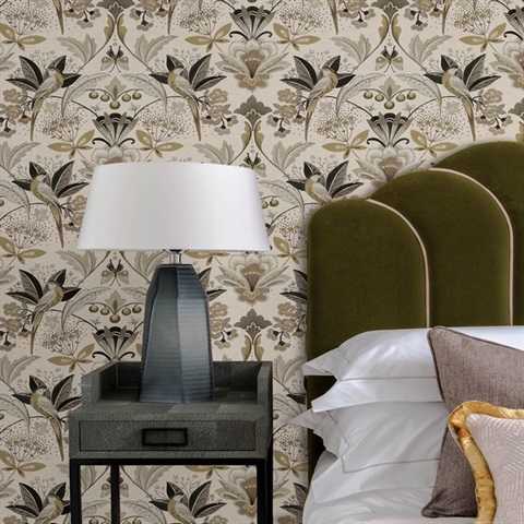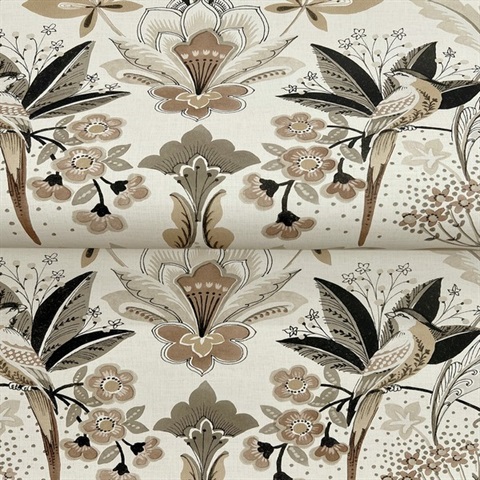 Pattern Name:Bernadette Black Garden Wilderness Bird Wallpaper