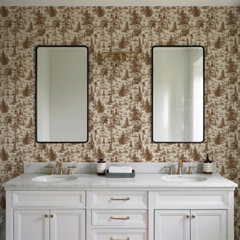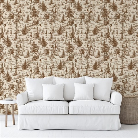 Bigfoot Novelty Toile Brown Peel and Stick Wallpaper