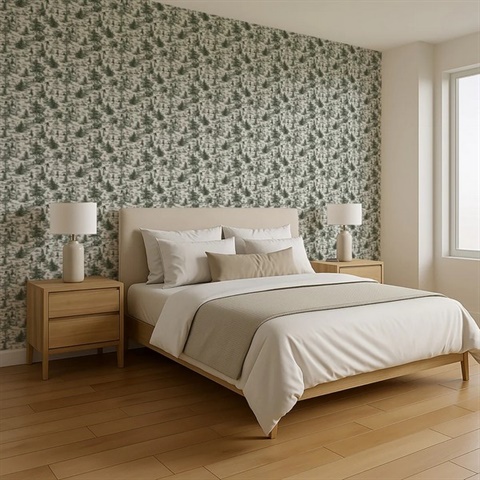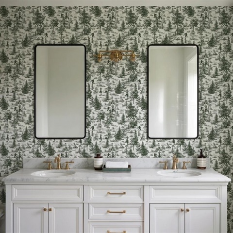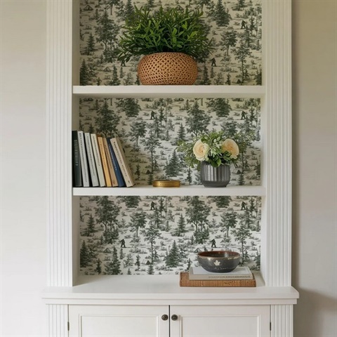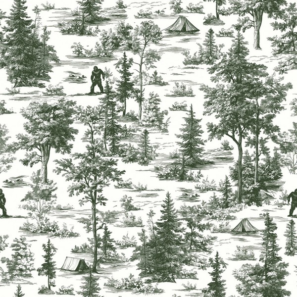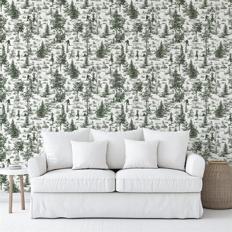 Bigfoot Novelty Toile Green Peel and Stick Wallpaper
