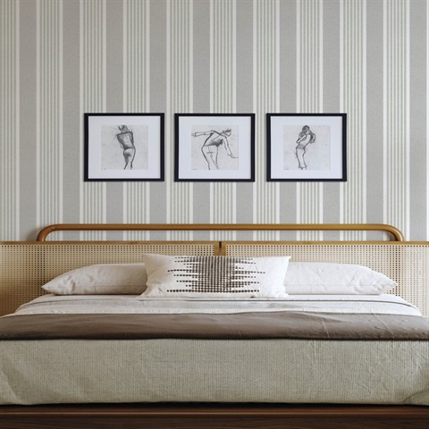 Bingley Green & Grey Embellished Stripe Wallpaper
