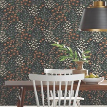 Pattern Name:Black & Green Wildwood Garden Floral Wallpaper