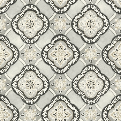 Pattern Name:Black & White Garden Trellis Medallion Wallpaper
