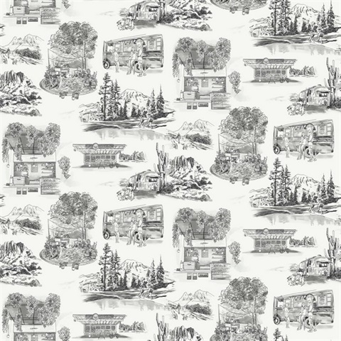 Pattern Name:Black & White Modern Vista Toile Wallpaper