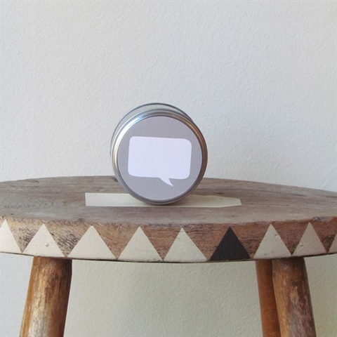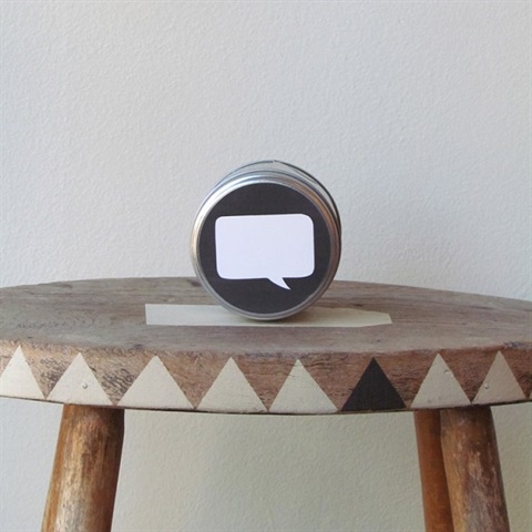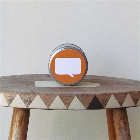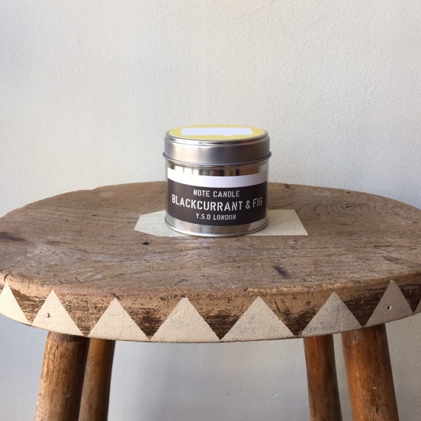 Yukari Sweeney Design London Soy-based candle with a gentle and relaxing Blackcurrant & Fig scent. Speech bubble left blank for your own message! A beautiful and calming scent that is hand poured in the UK. Labels come in 4 different colors: Yellow, Orange, Light Grey, and Dark Grey--> Indicate in the instructions section at checkout your preferred label color. Full safety and care instructions on base of tin. Burn time approx 25hrs Tin size 7CM by 6.5CM