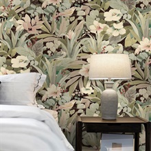 Pattern Name:Blossoming Birds Botanical Sage & Ash Brown Peel and Stick Wallpaper