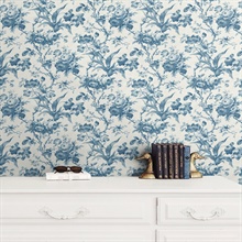 Blue Bell Faux Linen Toile En Rose Wallpaper