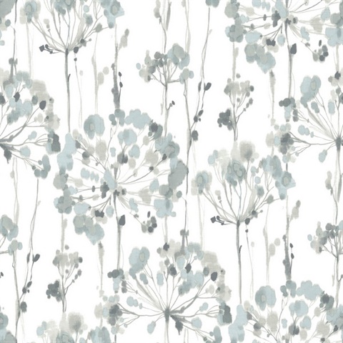 Blue & Grey Flourish Watercolor Ikat Floral Wallpaper