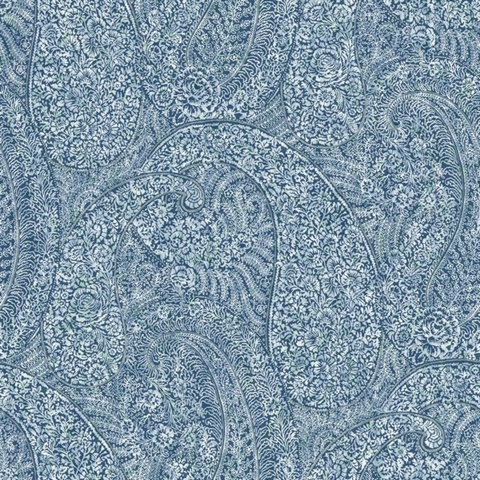 Blue Kashmir Dreams Indian Paisley Wallpaper