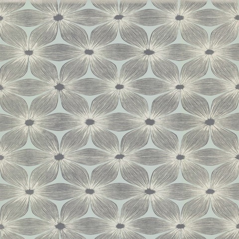 Blue & Silver Everlasting Foil Floral Trellis Wallpaper