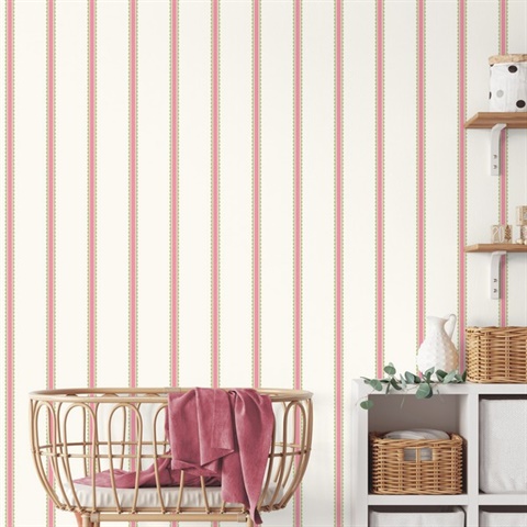 Bobbin Stripe Fuchsia Scalloped Wallpaper