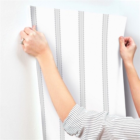• Pattern Name: Bobbin Stripe Grey Scalloped Wallpaper