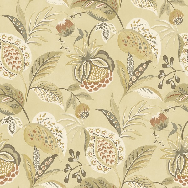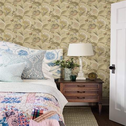 Bohemian Mustard Jacobean Floral Wallpaper, 3125-72302