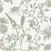 Botanical Blueprint Painterly Branches Green with Green Ground Wallpaper
