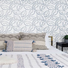 Botanical Tossed Leaves Navy Blue (Nextwall) Peel and Stick Wallpaper