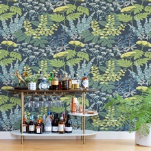 Pattern Name:Brie Dark Blue Forest Flowers Wallpaper