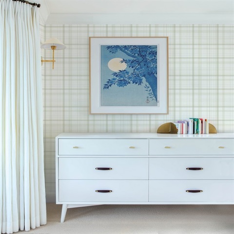 Pattern Name:Burgess Light Green Plaid Wallpaper