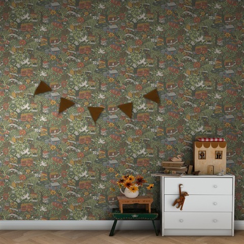 Pattern Name:Bygga Bo Dark Green Wallpaper
