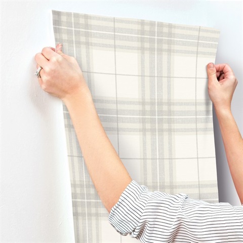 • Pattern Name: Cabin Check Light Grey Plaid Wallpaper