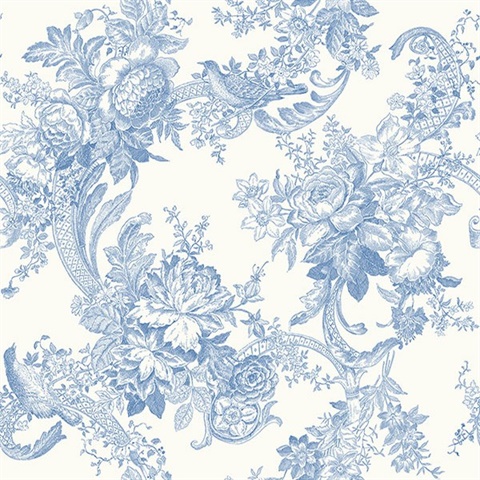 Carmel Light Blue Cornucopia Floral W/Birds Wallpaper