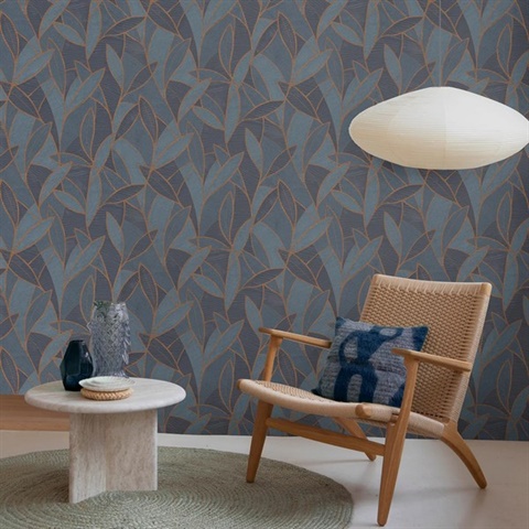 Pattern Name:Carved Leaf Dark Blue Wallpaper