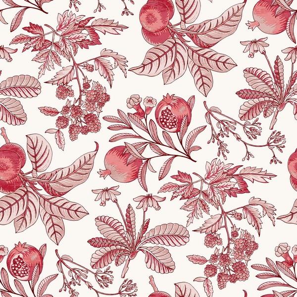 Pattern Name:Cecilia Red Illustrated Fruit & Leaf Wallpaper