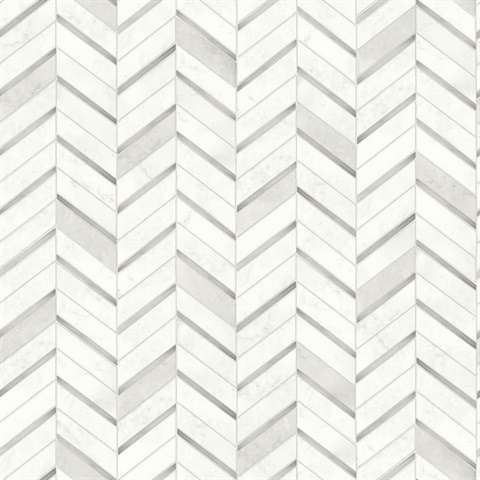 Chevron Marble Tile Tile Metallic Silver & Pearl Gray (Nextwall) Peel and Stick Wallpaper