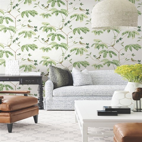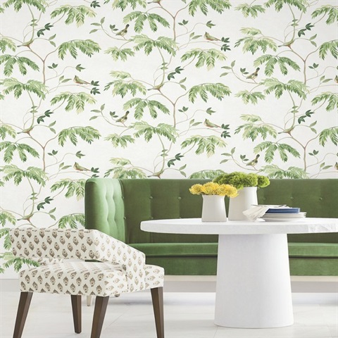 Pattern Name:Cillian Green Botanical Bird Trail Wallpaper