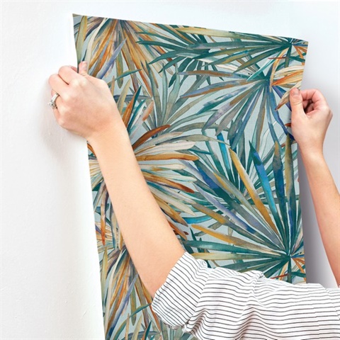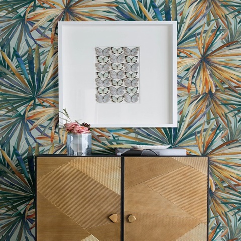 Pattern Name:Corifa Sea Green Palm Leaf Wallpaper