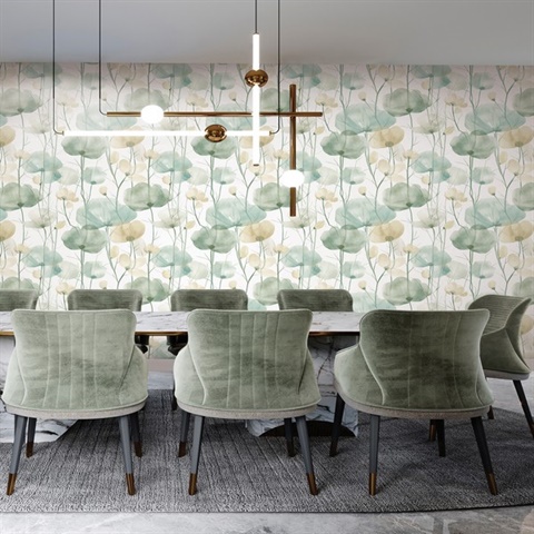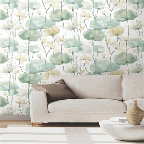 Pattern Name:Cotswolds Poppies Aqua Floral Wallpaper