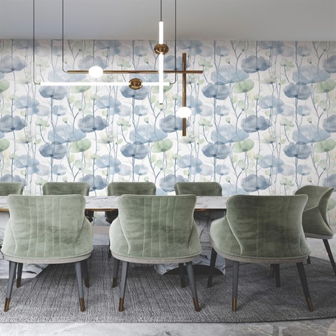 Pattern Name:Cotswolds Poppies Blue Floral Wallpaper