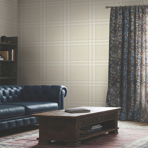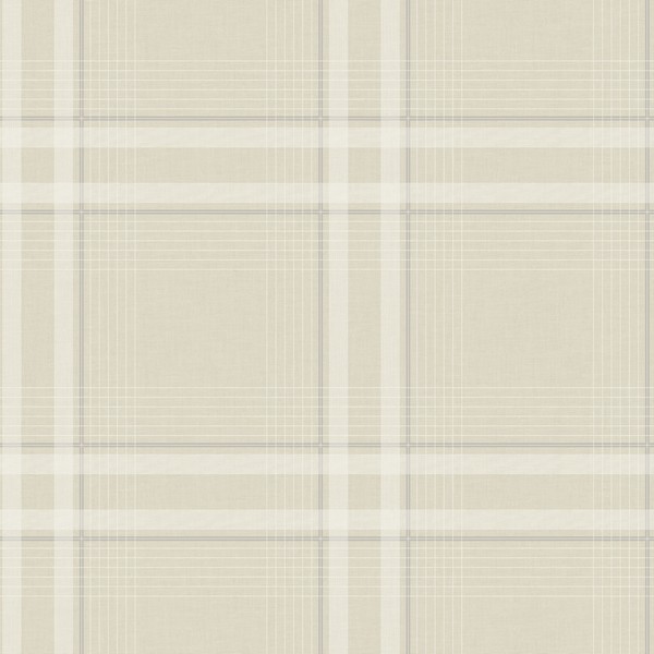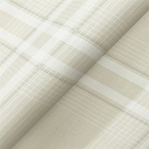 Pattern Name:Country Club Plaid Beige Faux Linen Wallpaper