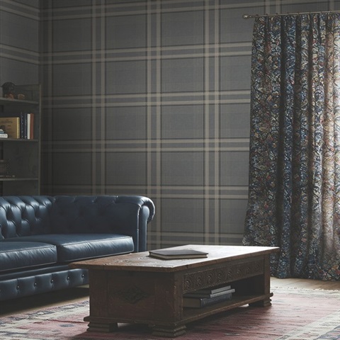 Pattern Name:Country Club Plaid Charcoal Grey Faux Linen Wallpaper