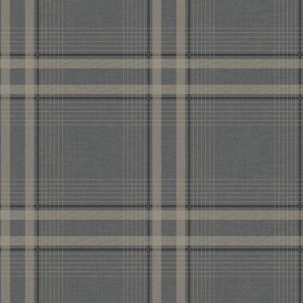 Country Club Plaid Charcoal Grey Faux Linen Wallpaper