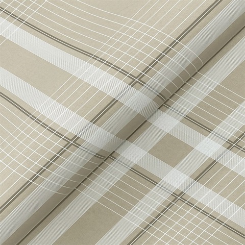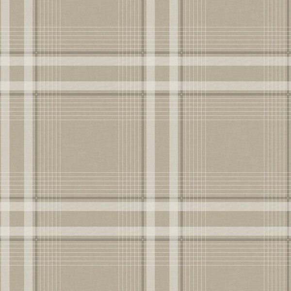 Country Club Plaid Taupe Faux Linen Wallpaper
