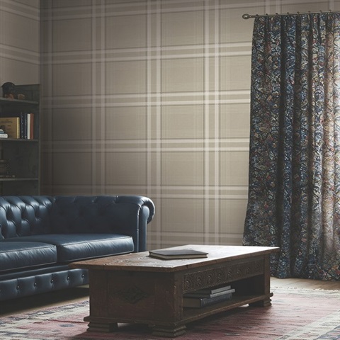 Pattern Name:Country Club Plaid Taupe Faux Linen Wallpaper