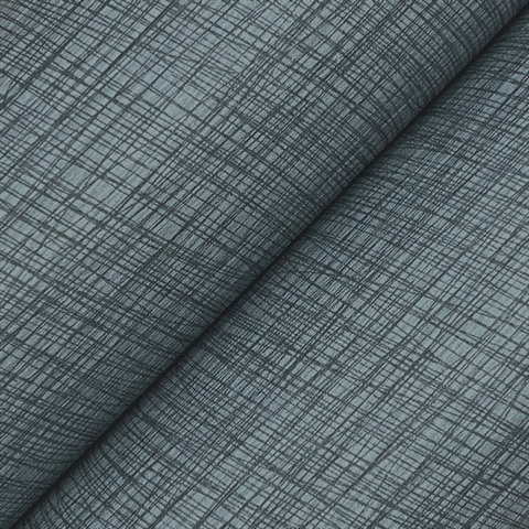 Crossover Blue Crosshatch Fabric Backed 15 oz. Vinyl Wallpaper