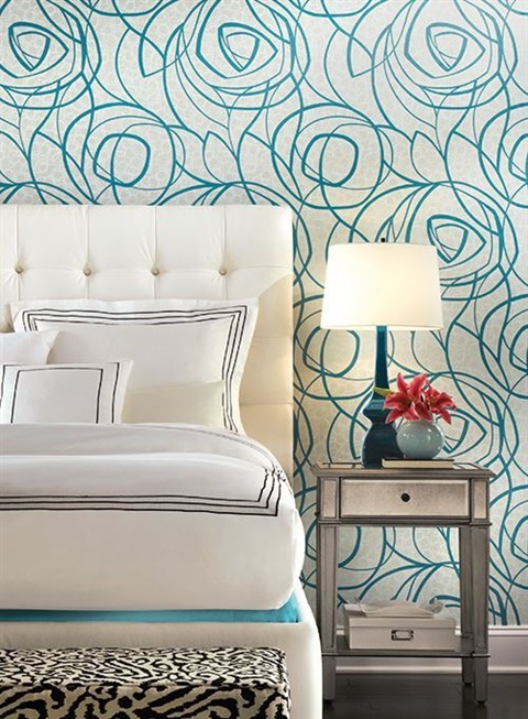 This Diamond Oasis wallpaper can provide beautiful doodled sketches of desert roses. The alabaster background and the turquoise sketches will create a whimsical appeal for your room.