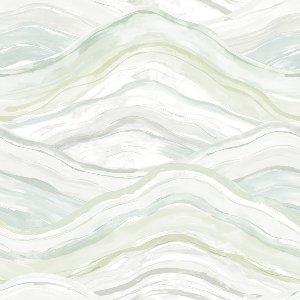 Pattern Name:Dorea Sea Green Striated Watercolor Waves Wallpaper