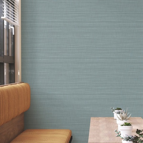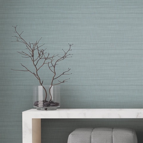 Down To Earth Aquamarine Horizontal Striated Fabric Backed 15 oz. Vinyl Wallpaper